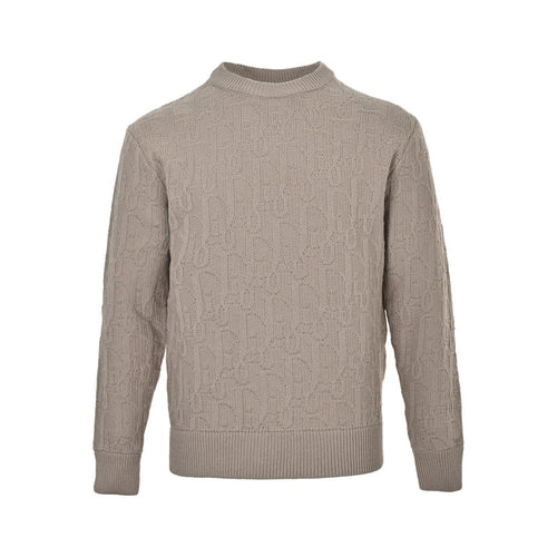 Beige Textured Oblique Knit Sweater